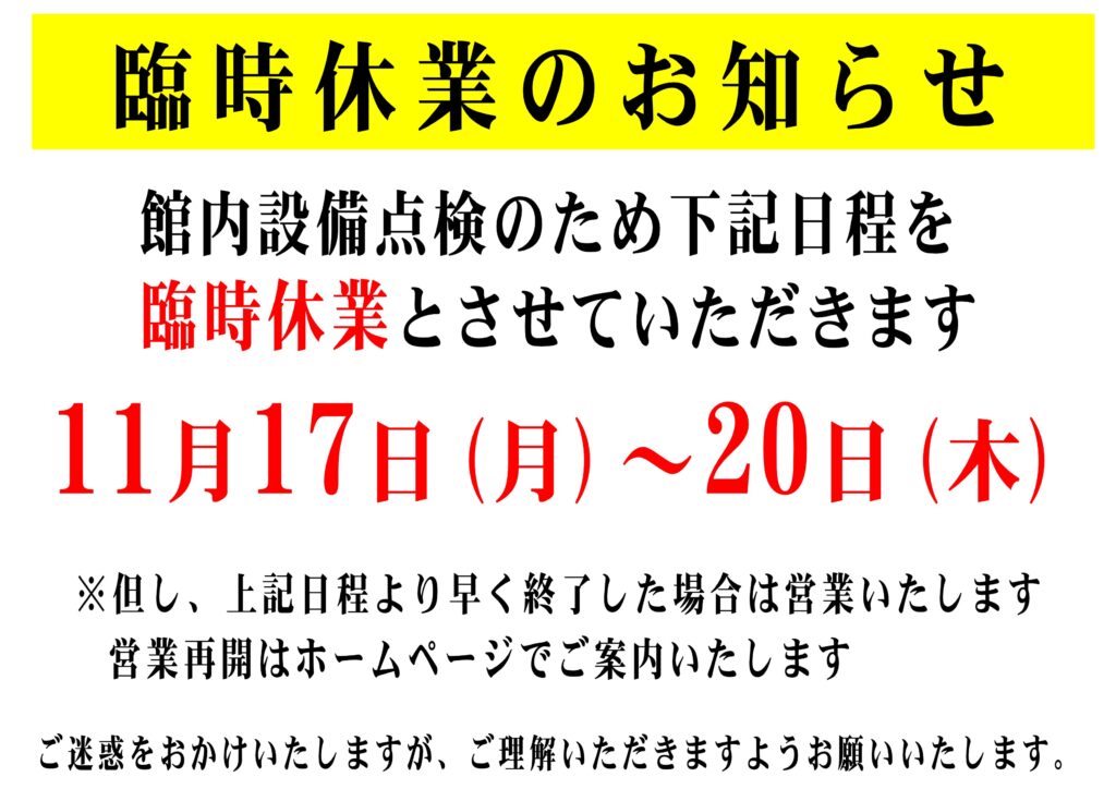 11月17日(月)~20日(木) 臨時休業のお知らせ